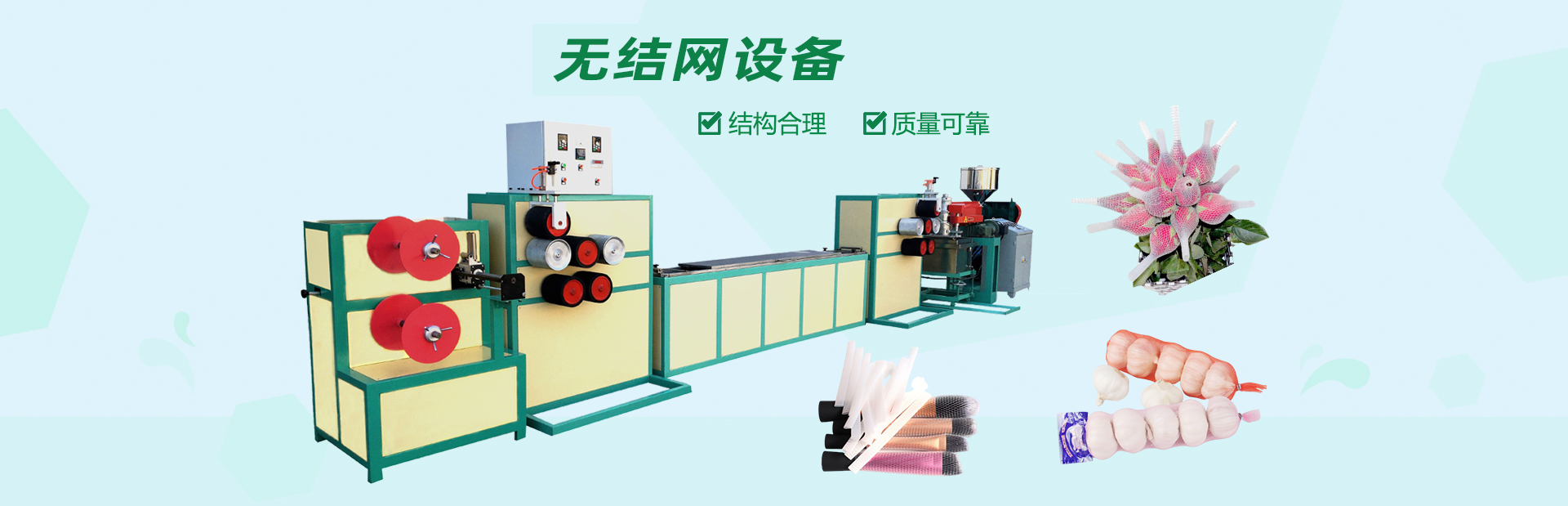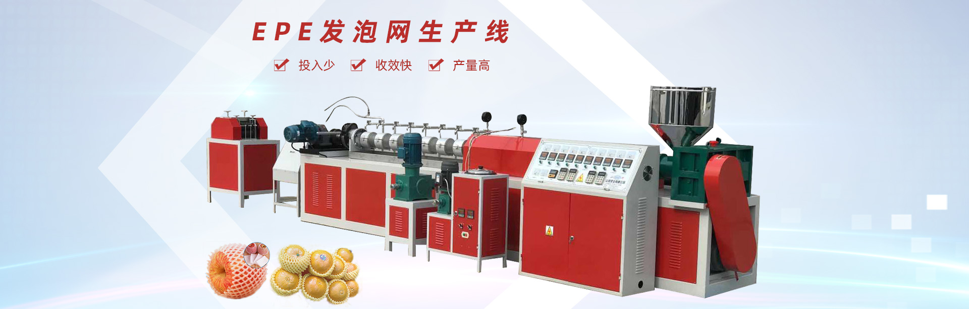 龍口市山河塑業(yè)有限公司生產(chǎn)的發(fā)泡網(wǎng)套機,用于水果、蔬菜、花蕾及瓶類的外包裝。我公司具有多年的實踐經(jīng)驗和可靠的技術力量,根據(jù)市場需求開發(fā)各種規(guī)格的網(wǎng)套。每24小時生產(chǎn)蘋果網(wǎng)套80萬-120萬個,設備驅動電機采用變頻控制,調(diào)速精度高、范圍廣、能耗低、運行可靠每小時僅用電10度左右,產(chǎn)量提高。此外,該生產(chǎn)線配置不同的模頭和輔機可生產(chǎn)發(fā)泡片、發(fā)泡管、發(fā)泡棒、發(fā)泡條及異型材等產(chǎn)品。